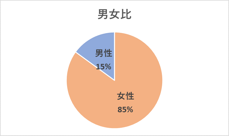 男女比は、web系だと女性の割合が圧倒的に多いようです。